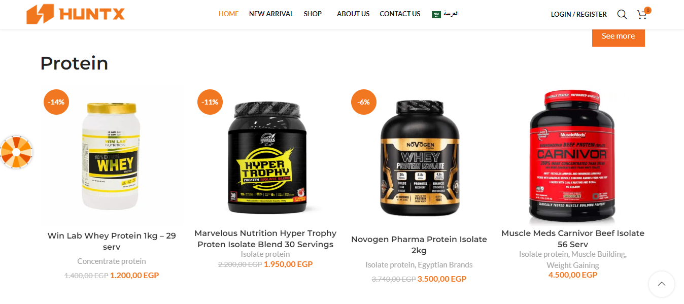 💪 Our Products: Showcasing a wide range of premium bodybuilding and fitness supplements, including protein powders, pre-workouts, creatine, mass gainers, vitamins, and recovery formulas.